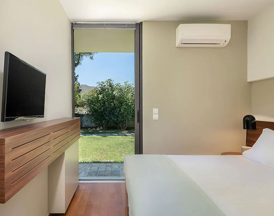 The basic elements of the construction strive to express a message of simplicity and balance, while repetitions of structure represent a sense of order. The synthesis is organized morphologically by the use of the structural elements exclusively, and accomplished by the use of bare minimum lines and elements. The special character of its design allows the guest to relax and enjoy their stay without visual stimulations.